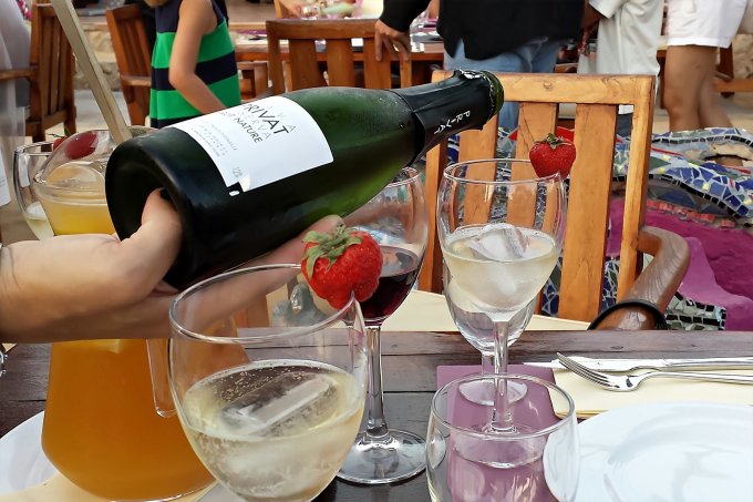 She was complemented by a great team too, who bustled around making sure everyone's wishes were marvellously attended to. At Stephanie's recommendation, we ordered the sangria, which came served with a bottle of excellent quality cava. It was absolutely gorgeous. Next arrived bread and ali-oli, made imaginatively with white strawberries. Lush!