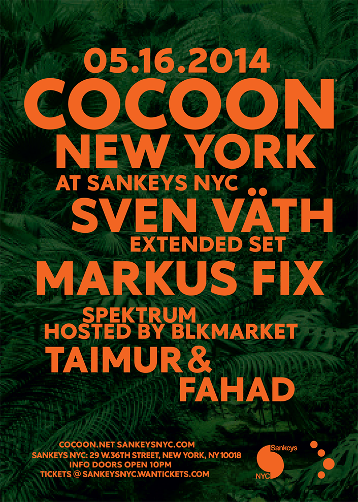In a major coup for the club, Sven Väth and his Cocoon team have agreed to stop in NYC and Sankeys for a special event on 16th May. The lineup is as follows. Tickets are more or less sold out, but you can buy a queue jumping first class ticket for $50 (£30 or 36€) which is still more than worth it.