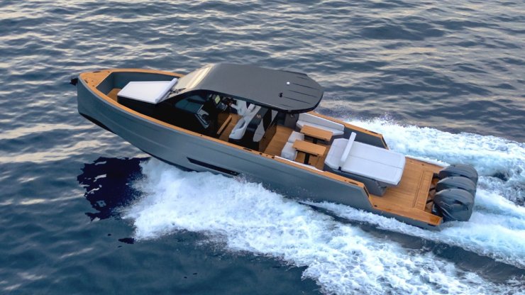 El techo rígido, fabricado en fibra de carbono, está diseñado para optimizar el rendimiento y la aerodinámica. Su espectacular sistema de propulsión, compuesto por tres motores Suzuki DF-350 AMD de 1050 CV, te permite alcanzar velocidades de hasta 50 nudos, manteniendo un consumo sorprendentemente bajo de 130 l/h a una velocidad de crucero de 30 nudos.