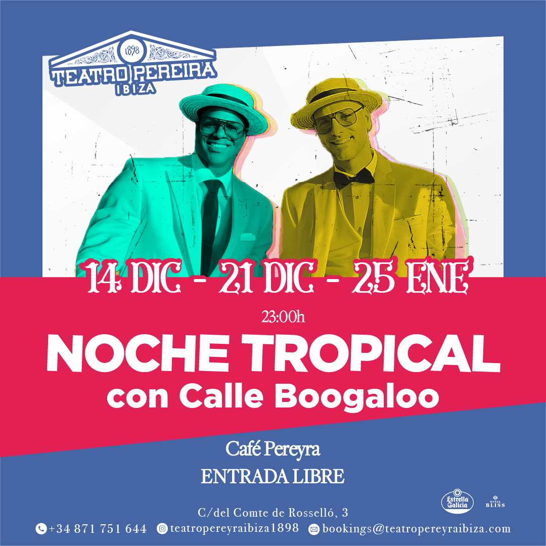 Los sábados, 14 y 21 de diciembre, así como el 25 de enero, a partir de las 23:00 horas, el Café Pereyra se convierte en el escenario de una vibrante fiesta tropical organizada por la enérgica banda Calle Boogaloo.