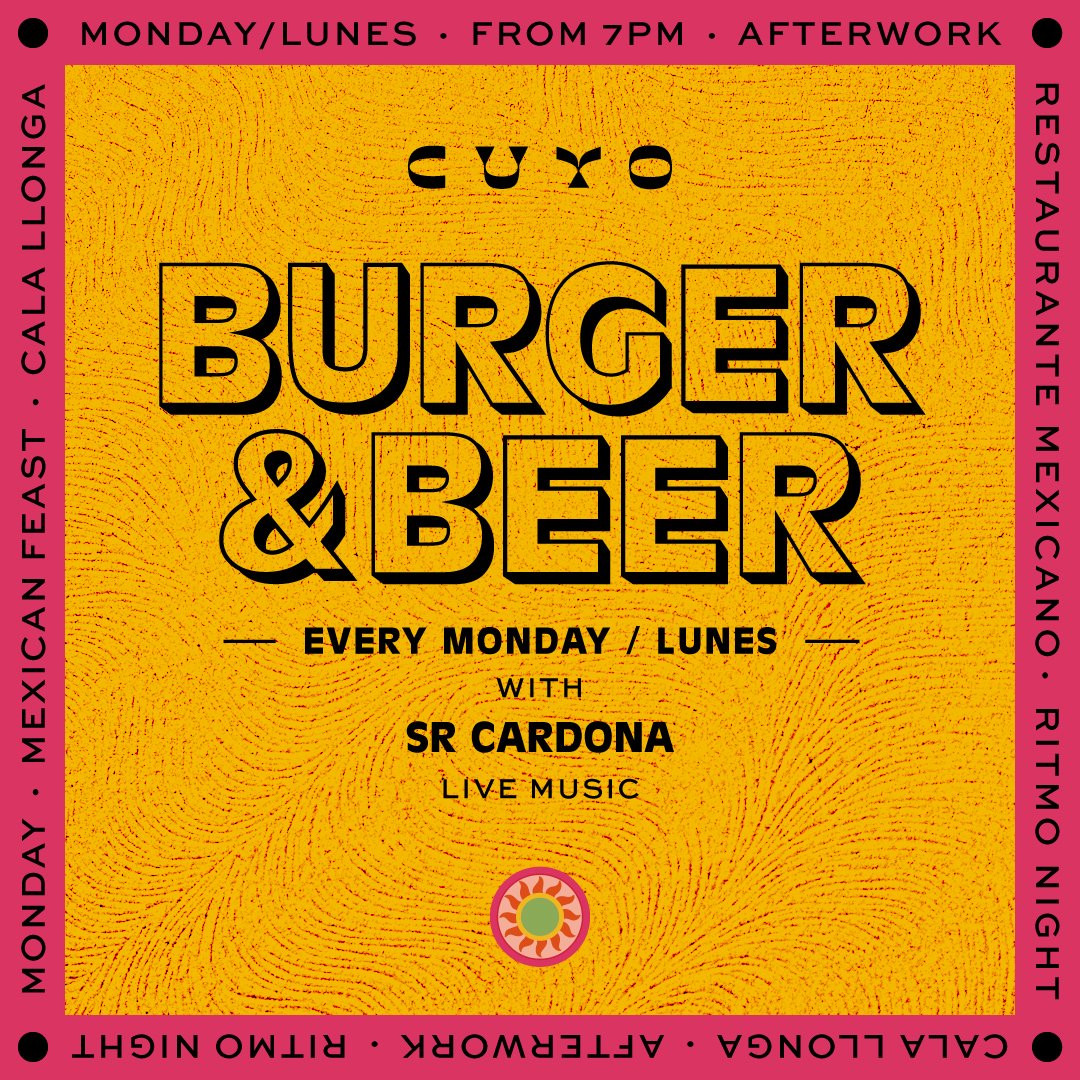 Cada lunes, el Restaurante Cuyo, ubicado en Hyde Hotel, presenta un evento que no te puedes perder: BURGER & BEER (B&B), donde los clientes podrán disfrutar de una deliciosa combinación de hamburguesas y cervezas, acompañados de una sesión de dj con ritmos latinos, ambiente caribeño con un toque de house interpretada por Sr Cardona.