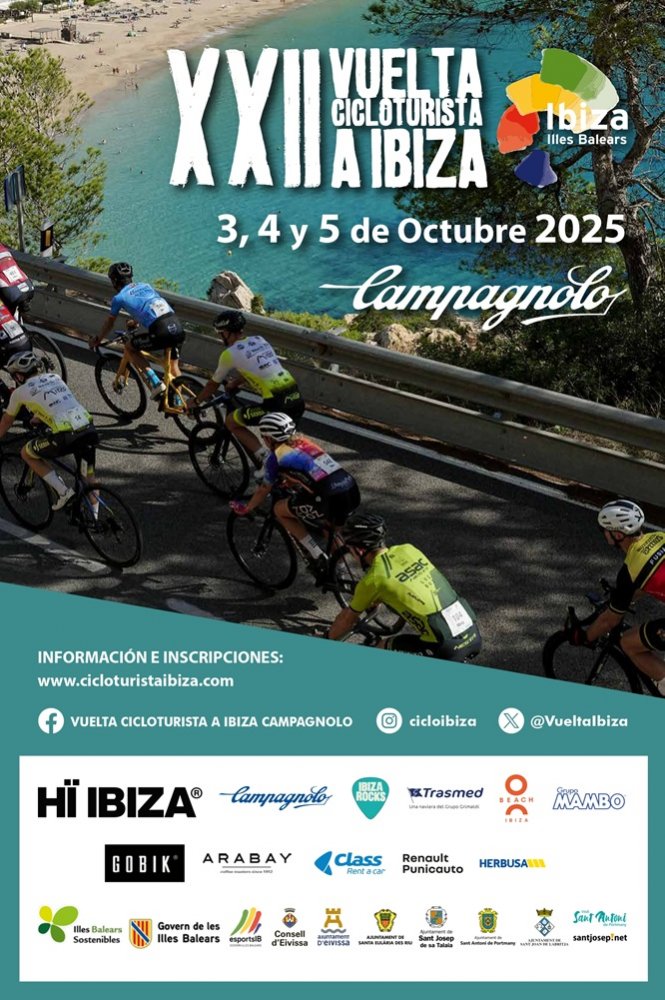 El 3 de octubre, la isla de Ibiza volverá a ser protagonista del cicloturismo al acoger la 22.ª edición de la "Vuelta a Ibiza Cicloturista Campagnolo 2025". Prepárate para un fin de semana lleno de rutas de ensueño, paisajes impresionantes, vistas increíbles, playas de arena virgen y aguas cristalinas.