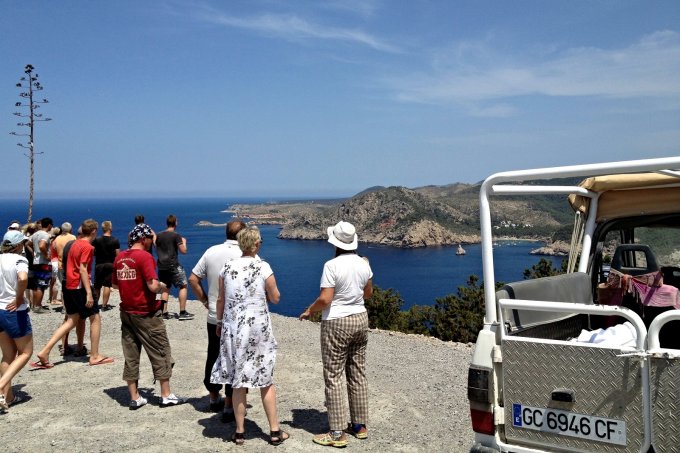 The convoy stopped and following a guide on foot we found ourselves on a huge cliff edge and Ibiza's glorious coast stretching around us. Wow factor truly achieved.