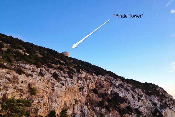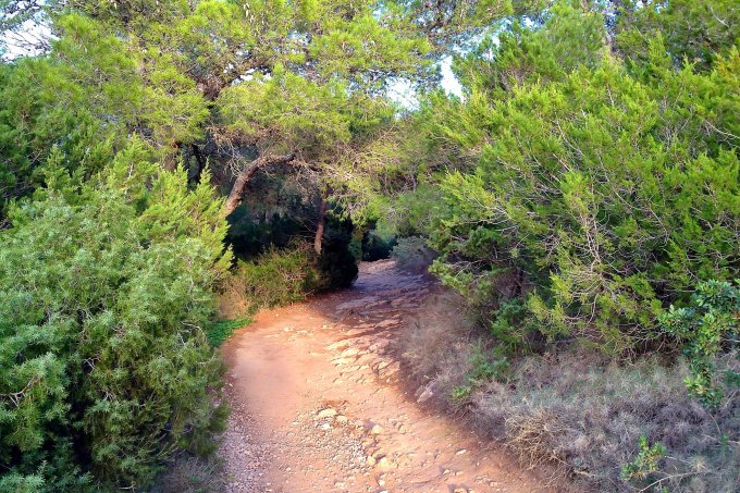 Glancing to the left, we saw the well-worn path leading up to the "pirate tower" - which we had just learned from a local Ibiza restaurateur is officially called "Se Pechera". Wanting to see the sunset at its very best over Es Vedra, we decided to make the climb.