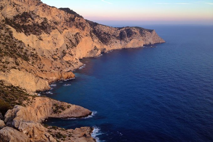 An easy five minute walk straight ahead from the car, and we reached the viewing platform. From here, the views are stunning, with mainland Spain, more than 70 kilometres away, easily visible in the distance. Es Vedra appearing to rise majestically out of the sea, and the dramatic cliff-faces surrounding us made it easy to understand why there are so many myths and legends surrounding this place. There is certainly an indescribable energy here that almost everyone who visits feels to greater or lesser degrees.