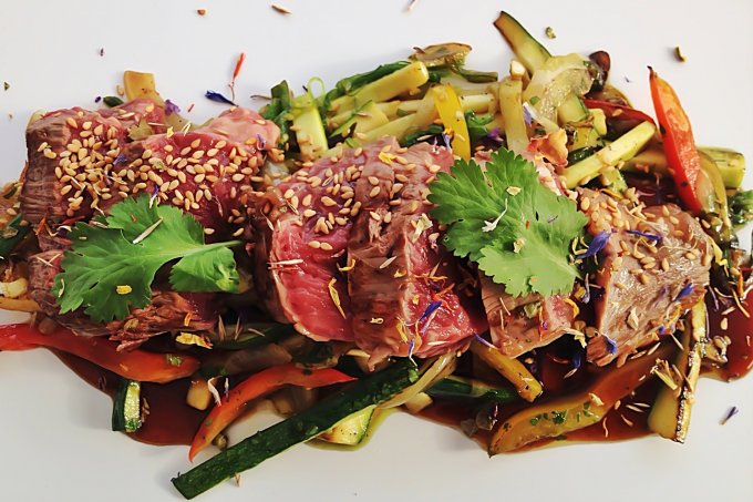 So far, so good. Then the starters arrived…and at this point, I beg forgiveness, dear readers, as I struggle to find the words to do justice to La Petite Belgique's stunning cuisine. The presentation of all of our meals was nothing short of spectacular, in fact, we all agreed that my starter of vegetable carpaccio was the most beautiful dish any of us had ever seen. Ever. And I can assure you that it tasted every bit as good as it looked. My friends soon overcame their envy as they tucked into prawn tempura, shrimp croquettes and beef teriyaki with enthusiasm as big as the smiles on their faces.