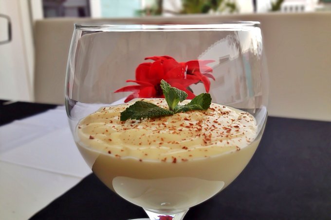Our main courses were equally as imaginatively presented and faultlessly cooked. Ratatouille with fresh cod topped with chilli, a delicious selection of salmon, rack of lamb and sirloin steak with foie gras, all freshly prepared, the vegetables locally sourced in Ibiza, and everything served with aplomb.
