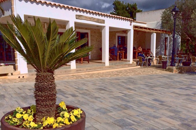 Surprisingly busy on this somewhat cloudy winter day in Es Cubells, there was a happy and relaxed atmosphere in the restaurant as the mainly local clientele chatted and tucked into their food. Nevertheless, our waiter, Oliver, greeted us in perfect English as he showed us to our table on the pretty terrace surrounded by colourful plants, and overlooking Es Cubells's church square with its plethora of trees and picturesque street lamps.