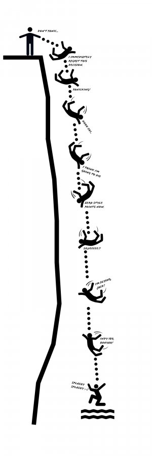 Turns out no one else yelped when they were airborne, but for me it was automatic (and kind of part of the fun). With a loud and impressive “squeeeeeeee!!!” I shot like a cannonball from the cliff's edge, instantly heading south and dropping with a fat splash into the sea below, also depressingly like a cannonball. Once you pop it's hard to stop so, boosted by the polite applause of my colleagues, I quickly lined myself up for the next highest jumping point. Perhaps not quite the north face of the Eiger, this loftier perch nonetheless felt more imposing than I had imagined, so I dawdled at the top for a while, freaking myself out and ruining my Spotlight street cred. Ismael was really helpful here, giving me a countdown which geared me up for the jump whilst also shaming me out of waiting any longer - and with an almighty squeal I was off again.