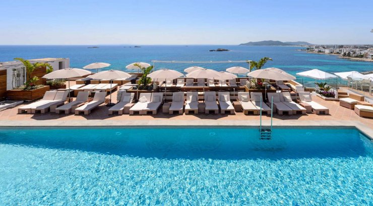 Una leyenda en la escena hotelera de Ibiza, el moderno MIM Ibiza Es Vive es la elección ideal para el viajero preocupado por el estilo. Situado justo en el medio entre la emocionante vida nocturna de Ibiza ciudad y el animado ambiente de entretenimiento de Playa d'en Bossa, los huéspedes tienen muchas opciones para elegir. Detrás de la icónica fachada art déco, encontrarás un santuario de estilo, buena comida, música estupenda y un glamuroso bar en la azotea perfecto para ver la puesta de sol, con un cóctel en la mano.