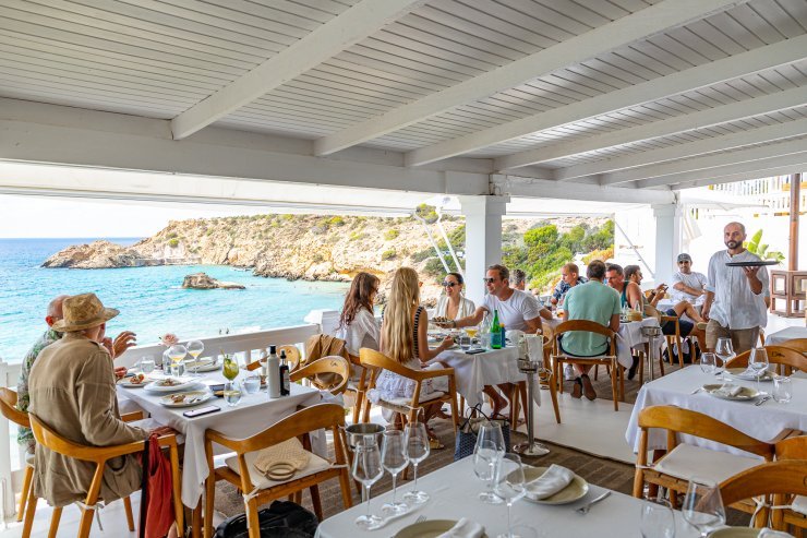 El restaurante Sa Caleta es un antiguo refugio de pescadores que hoy es un acogedor restaurante de gestión familiar, con vistas a la playa y a los acantilados de piedra roja. Podrás elegir entre la oferta de cocina típica ibicenca y española, como el rape con salsa marinera, diferentes tipos de paella o el delicioso bullit de peix. Algo que debes probar es su café Caleta, café aromatizado con una embriagadora mezcla de alcohol, frutas y especias que se prende en tu mesa en un característico cuenco de barro.