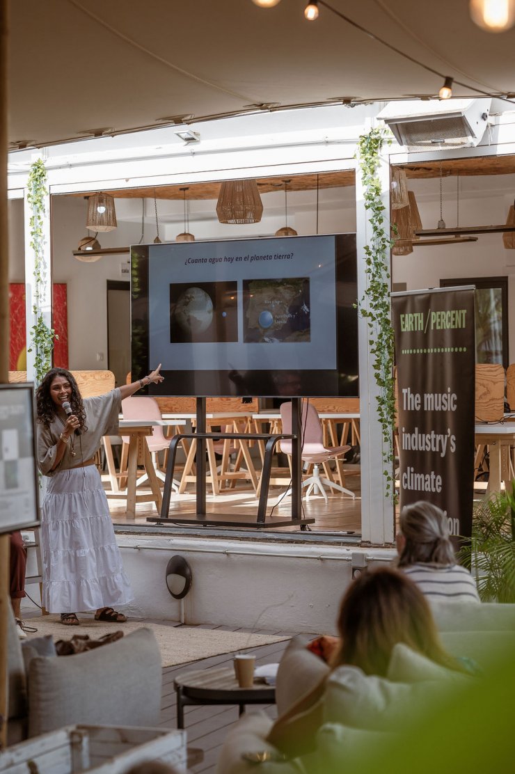 Le siguió Peachy Keane (directora de eventos de EarthPercent Ibiza), que añadió: "Nuestras esferas prioritarias incluyen la preservación de la naturaleza, la justicia climática, la reforma de políticas, la transición energética equitativa y la descarbonización del sector musical".