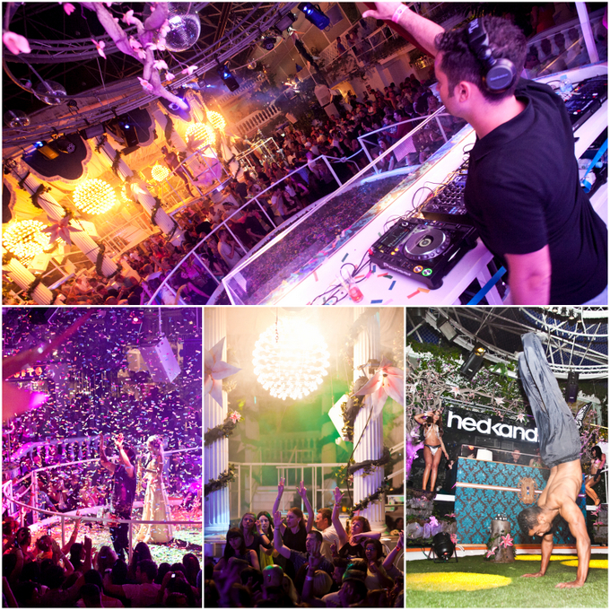 The club was like a huge adult playground and the crowd thoroughly embraced it, lapping up the pyrotechnics, confetti and huge disco balls hanging from the ceiling. It was really refreshing to see such a diverse crowd of various ages, holidaymakers, Hed Kandi veterans and season workers all enjoying the night and dancing together to house, disco and all kinds of dance music. It was also great to see the DJs really enjoying themselves; in this style of venue, with the DJ booth set out like a stage, personality and performance is equally as important as good tunes. In such a visually impressive venue the DJs are under pressure to play an equally impressive soundtrack, but they were on top form, blasting anthems such as ‘Born Slippy' and Fedde Le Grand's ‘So Much Love' which filled every sequined corner of Es Paradis.