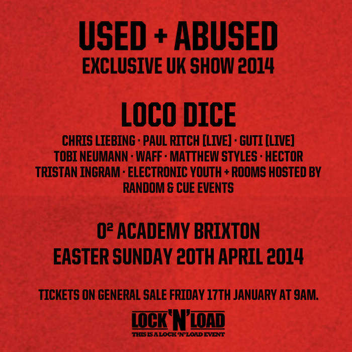 As we announced in December, Loco Dice will be taking his party to the UK for an exclsuive show at the O2 Academy in Brxton, London, on Easter Sunday 20th April.