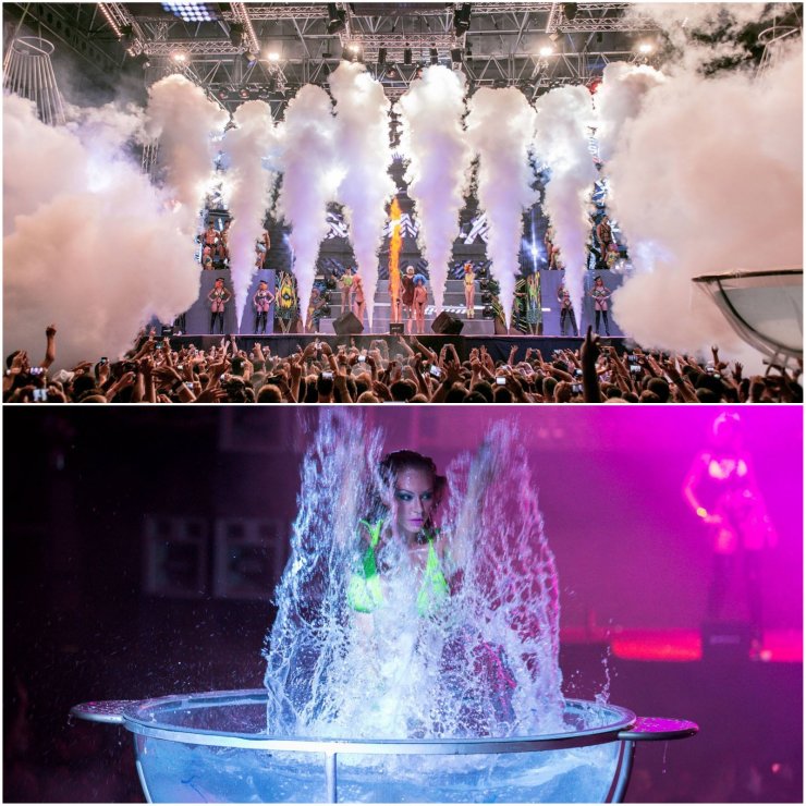 SupermartXé is an erotically enthused extravaganza, a sensory overdrive that leaves you unsure of whether your ear canals or eye sockets took more of a welcomed ambushing. A castle theme took to the Privilege stage with a custom of bondage clad theatricals holding the show in front of its brick walls and turrets. Black leather strapped male and female dancers gyrated as flexible limbed dancers splashed water onto the front packed audience from their large water filled cocktail glasses and rope spinning suspended acrobats entertained the back frontiers of revelers.